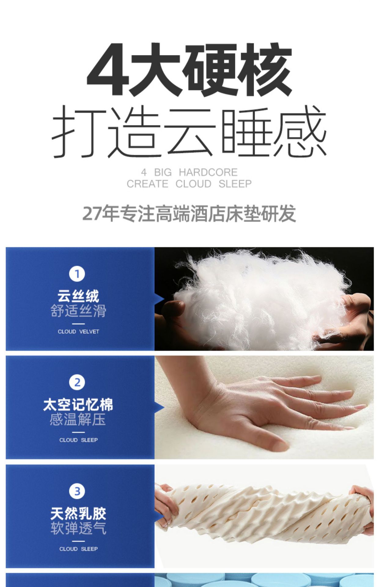 梦工坊乳胶床垫静音独立弹簧记忆棉软硬两用五星级酒店民宿席梦思