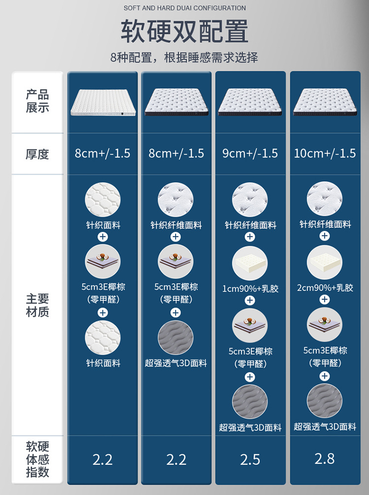 玖优源3D棕榈1.5米家用榻榻米垫硬垫8/10/15cm3E椰棕乳胶床垫偏硬