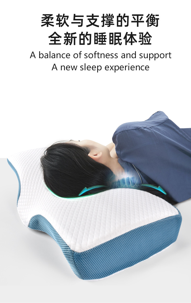 新款记忆枕慢回弹记忆棉枕头蝶形护颈枕透气舒缓颈椎异形枕头
