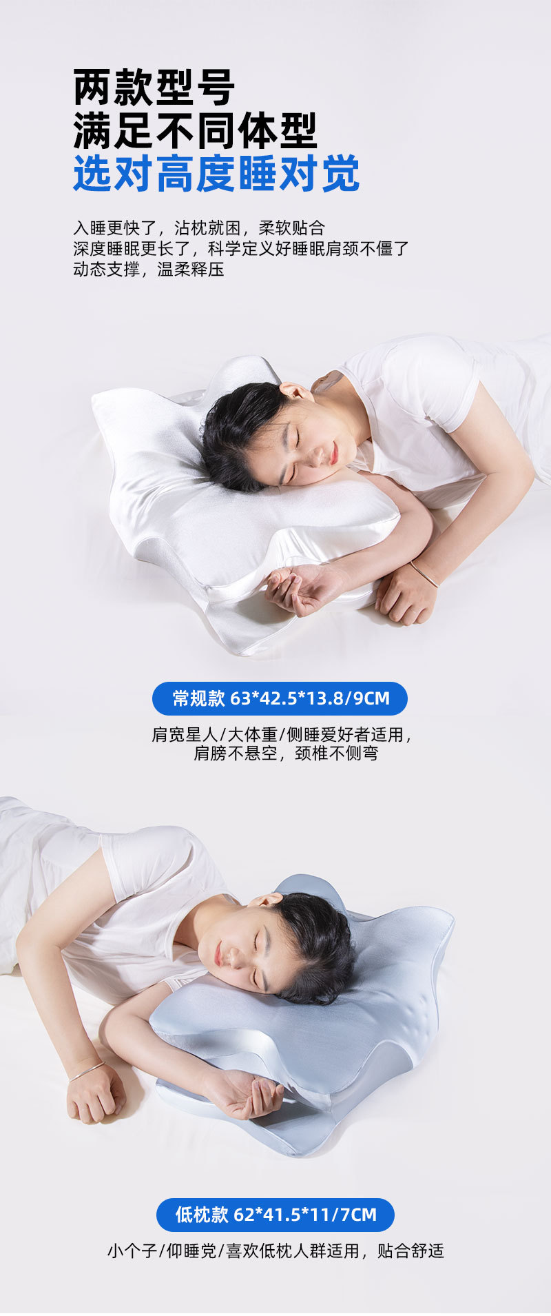 记忆棉蝴蝶枕深睡护颈枕侧睡成人枕头零压力颈椎枕助睡眠蝶形枕头