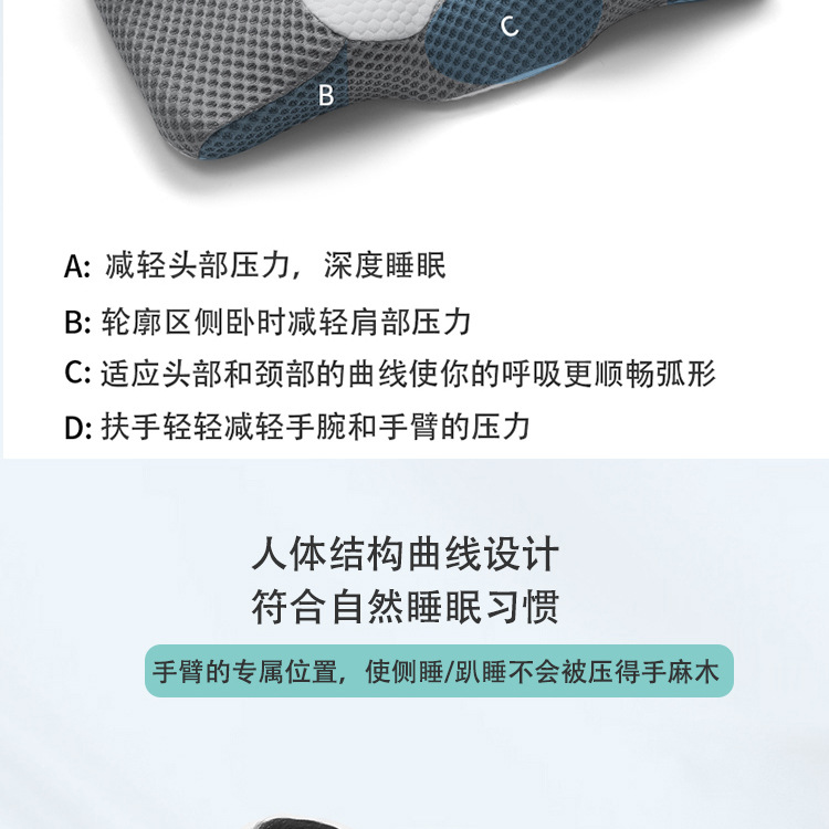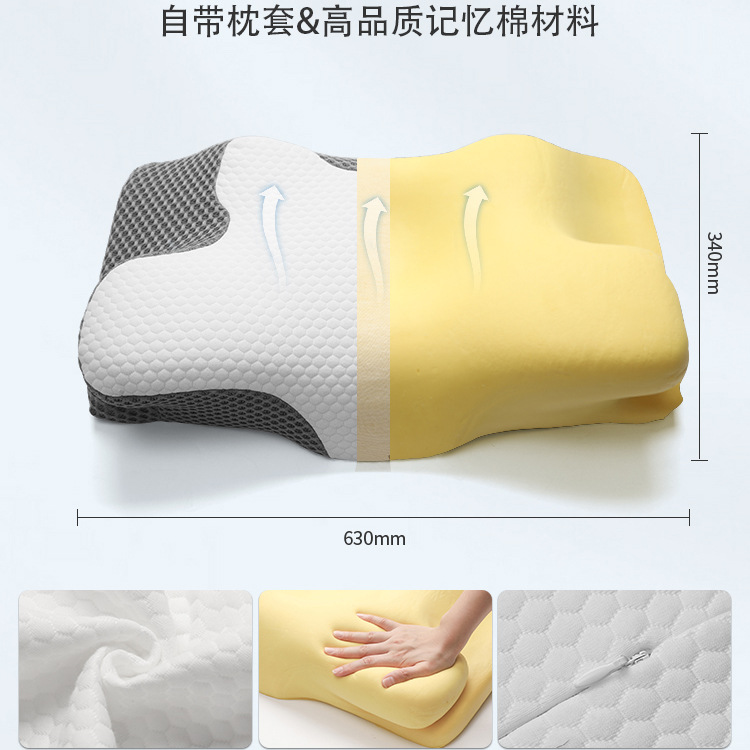 新款记忆枕慢回弹记忆棉枕头蝶形护颈枕透气舒缓颈椎异形枕头