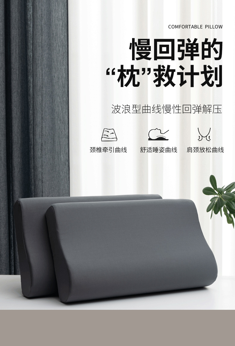 记忆棉枕头慢回弹助睡眠a类不塌人体工学单人冰丝面料护颈枕