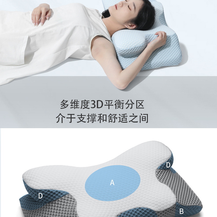 新款记忆枕慢回弹记忆棉枕头蝶形护颈枕透气舒缓颈椎异形枕头
