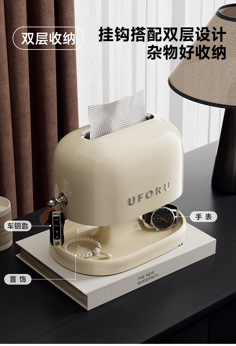 纸巾盒简约高级家用客厅玄关钥匙手表收纳盒双层弹簧可升降抽纸盒